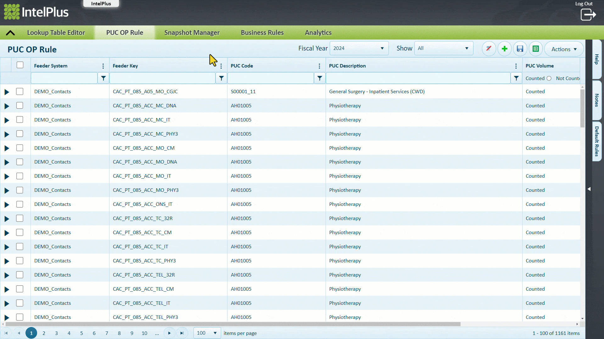 Outpatient Activity Feeder Keys are shown in this screen so they can be mapped correctly based on Business Rules used to populate it. Further Business Rules are then called as part of the load process to derive contracts based on this mapping.
